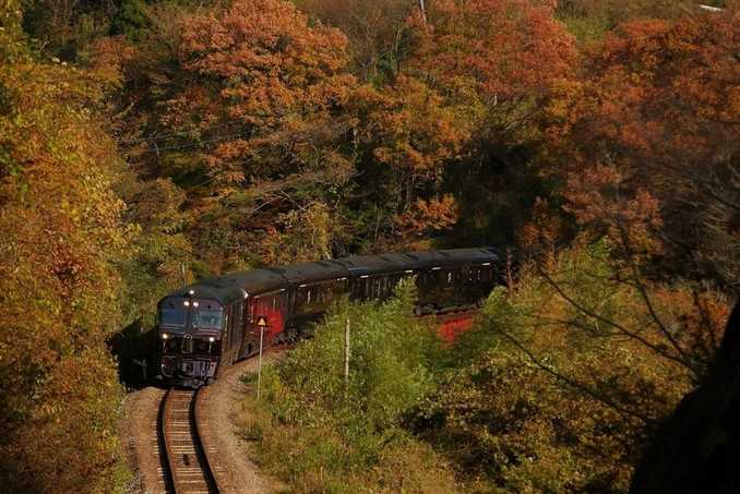 The luxury train Seven Stars in Kyushu began operations in 2013 on the island of Kyushu, the southernmost and third-largest island in Japan. The name “Seven Stars” is derived from the fact that it offers a journey through the island’s seven prefectures and consists of seven cars (excluding the locomotive): a dining car, a bar lounge car, and five sleeping cars with 14 suites. Guests can choose between a four-day route or a two-day route.