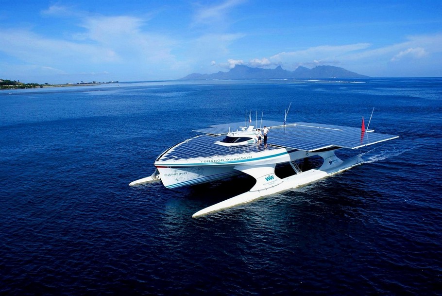 The yacht, named Turanor, is derived from J.R.R. Tolkien’s “The Lord of the Rings” and means “power of the sun” in Elvish. This exceptional-looking yacht features a massive array of photovoltaic cells that, when fully extended, cover more than half a square kilometer of surface area exposed to the sun’s rays. The electricity generated is stored in six lithium-ion batteries that power the engines to approximately 130 kW.